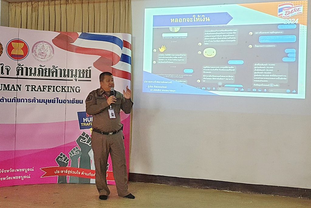 มอบหมายให้ พ.ต.ท.วิริยะ กิ่งแก้ว รอง ผกก.(สอบสวน) สภ.เมืองเพชรบูรณ์ พร้อมด้วย ด.ต.ประพรรณ ทองเปิ่ง ผบ.หมู่ (ป.) สภ.เมืองเพชรบูรณ์ ทำหน้าที่วิทยากร “โครงการเสริมสร้างความตระหนักรู้แก่เด็กและเยาวชน ให้รู้เท่าทันภัยการค้ามนุษย์ออนไลน์รูปแบบใหม่” จัดโดยสำนักงานพัฒนาสังคมและความมั่นคงของมนุษย์จังหวัดเพชรบูรณ์ ให้กับนักเรียนโรงเรียนฤทัยทิพย์ ในหัวข้อ “รู้ไว้ไม่เสี่ยง การค้ามนุษย์กับภัยออนไลน์”