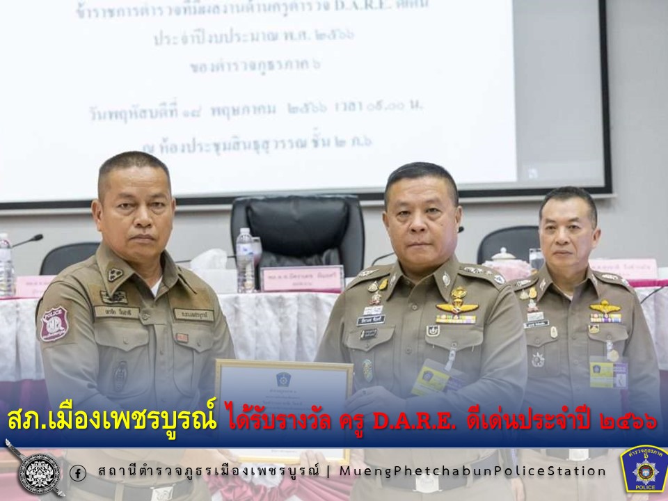 สภ.เมืองเพชรบูรณ์ ได้รับรางวัล ครู D.A.R.E.ดีเด่น ปี 2566