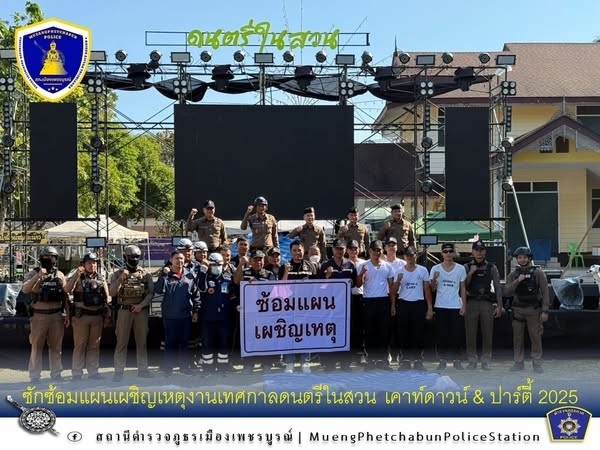 “ซักซ้อมแผนเผชิญเหตุงานเทศกาลดนตรีในสวน เคาท์ดาวน์ & ปาร์ตี้ 2025” สภ.เมืองเพชรบูรณ์
