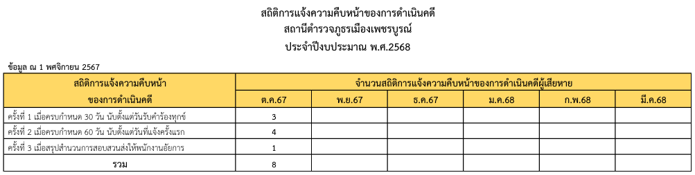 ข้อมูลผลการดำเนินงานในเชิงสถิติการแจ้งความคืบหน้าของการดำเนินคดี เดือน พฤศจิกายน 2567