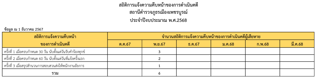 ข้อมูลผลการดำเนินงานในเชิงสถิติการแจ้งความคืบหน้าของการดำเนินคดี เดือน ตุลาคม 2567