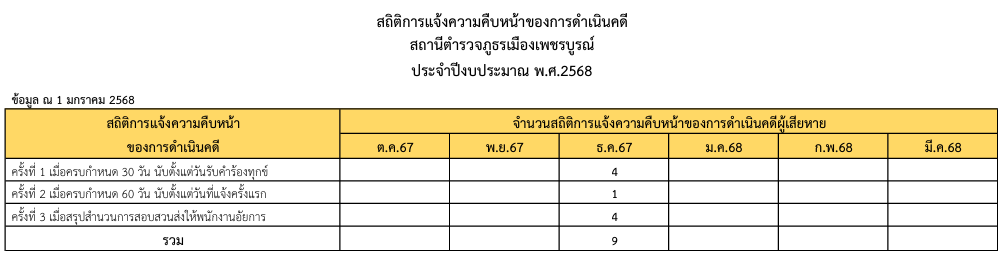 ข้อมูลผลการดำเนินงานในเชิงสถิติการแจ้งความคืบหน้าของการดำเนินคดี เดือน มกราคม 2568