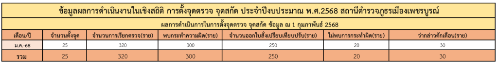 ข้อมูลผลการดำเนินงานในเชิงสถิติ การตั้งจุดตรวจ จุดสกัด เดือนมกราคม 2568